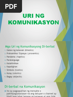Uri ng di berbal na komunikasyon 5. 1 Dalawang uri ng komunikas yon Berbal na Komunik asyon 3 4 Ito ay gumagamit. Ingay sa paligid distraksyong biswal suliraning teknikal na kaugnay ng sound system hindi mahusay na pag-iilaw hindi komportableng upuan.