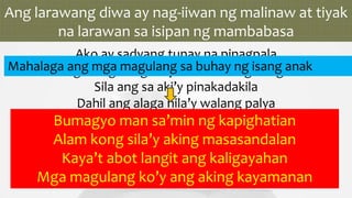 Narito ang dalawamput limang mga tula tungkol sa pag-ibig. Lubha itong nakaga- ganda sa pagbigkas ng tula. Akoy isang Pinoy Pagmamahal ko sa bayan ay umaapoy Lupang sinilangan ko Minamahal ko ito ng.