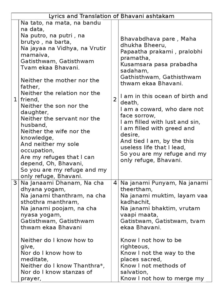 Lyrics And Translation Of Bhavani Ashtakam Pdf Theology Indian Religions